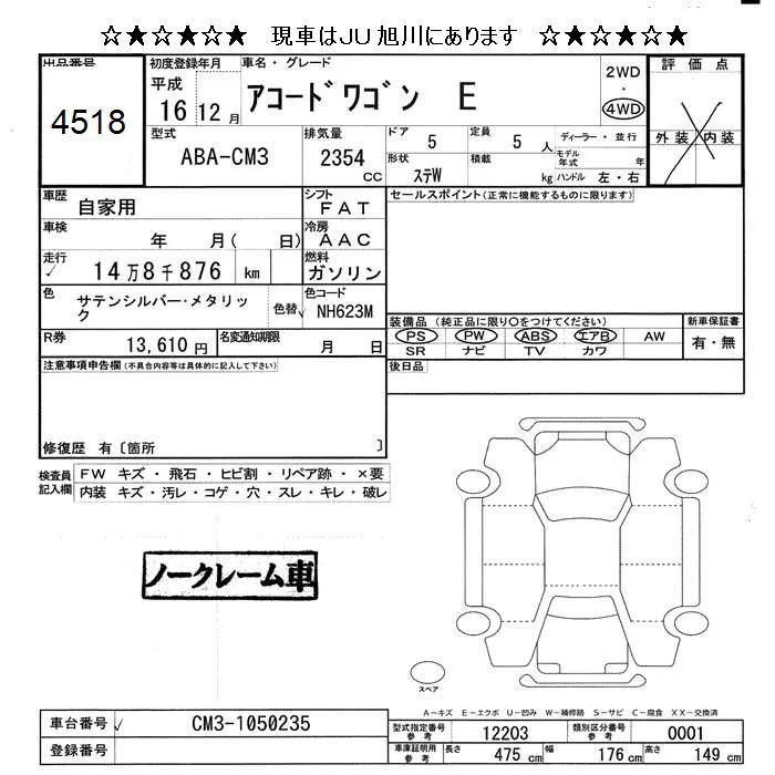 Honda ACCORD WAGON с аукциона Японии JU Hokkaido лот № 4518