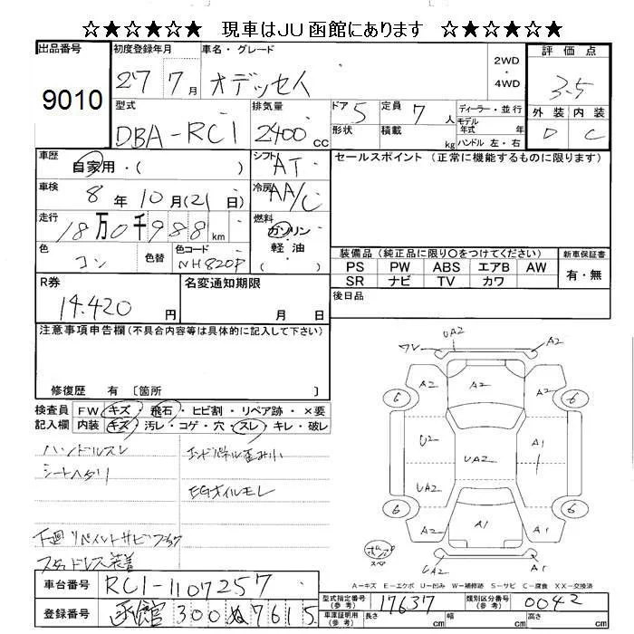 Honda ODYSSEY с аукциона Японии JU Hokkaido лот № 9010