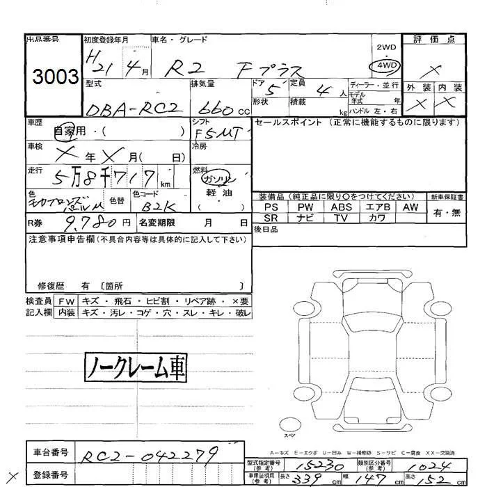Subaru R2 с аукциона Японии JU Hokkaido лот № 3003