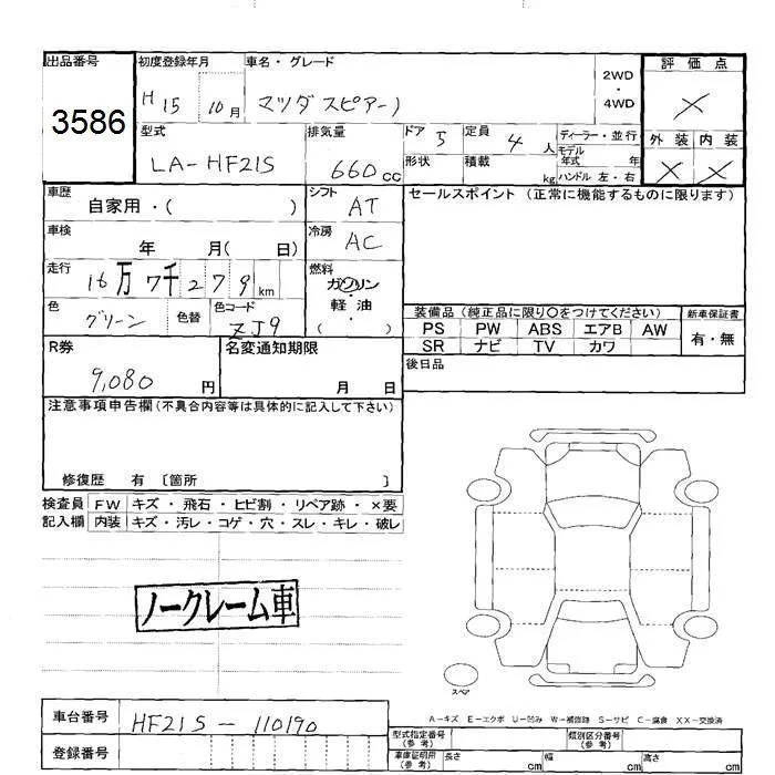 Mazda SPIANO с аукциона Японии JU Hokkaido лот № 3586