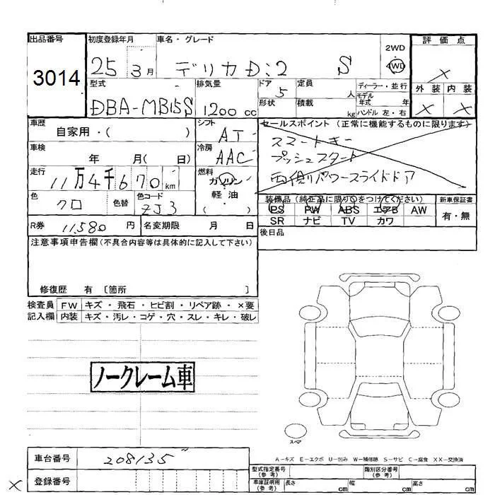 Mitsubishi DELICA D2 с аукциона Японии JU Hokkaido лот № 3014