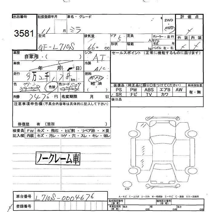 Daihatsu MIRA с аукциона Японии JU Hokkaido лот № 3581