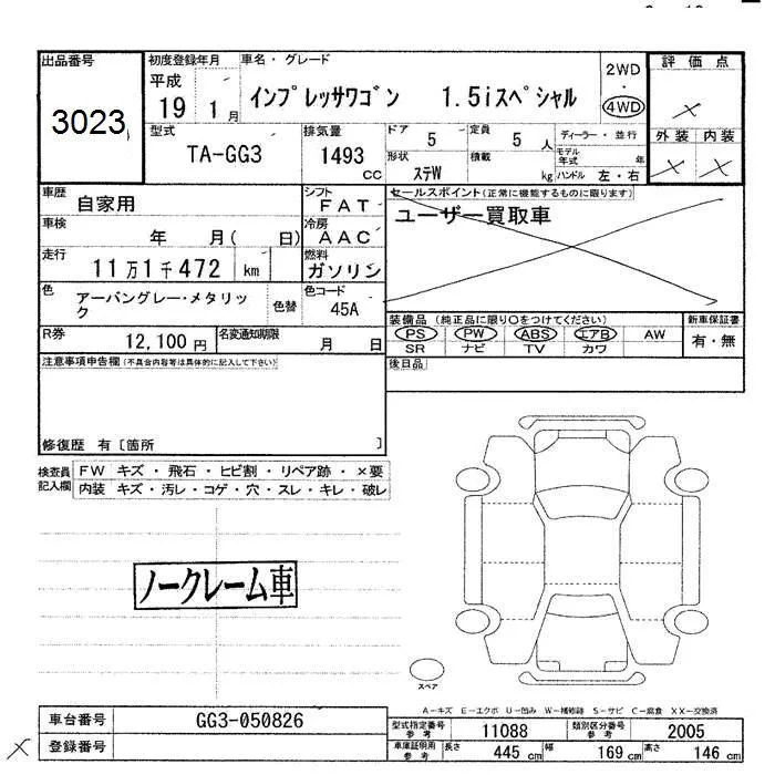 Subaru IMPREZA с аукциона Японии JU Hokkaido лот № 3023