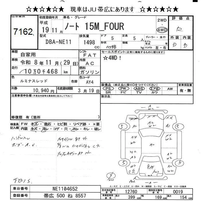 Nissan NOTE с аукциона Японии JU Hokkaido лот № 7162