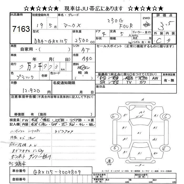 Toyota MARK X с аукциона Японии JU Hokkaido лот № 7163