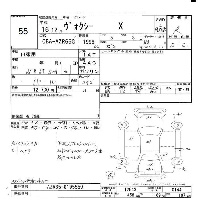 Toyota VOXY с аукциона Японии JU Hokkaido лот № 55