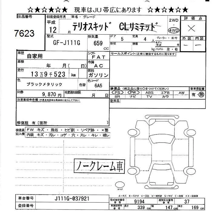 Daihatsu TERIOS KID с аукциона Японии JU Hokkaido лот № 7623