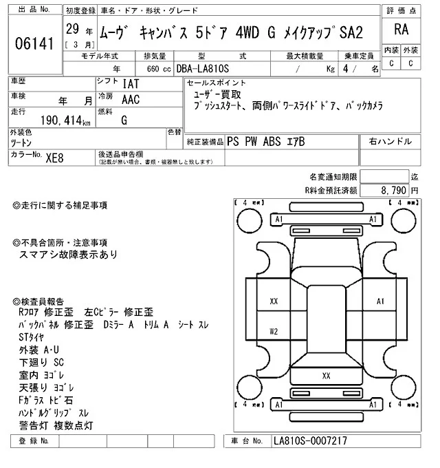 Daihatsu MOVE CANBUS с аукциона Японии ARAI Sendai лот № 6141