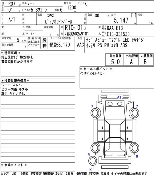 Nissan NOTE с аукциона Японии NAA Tokyo лот № 1006