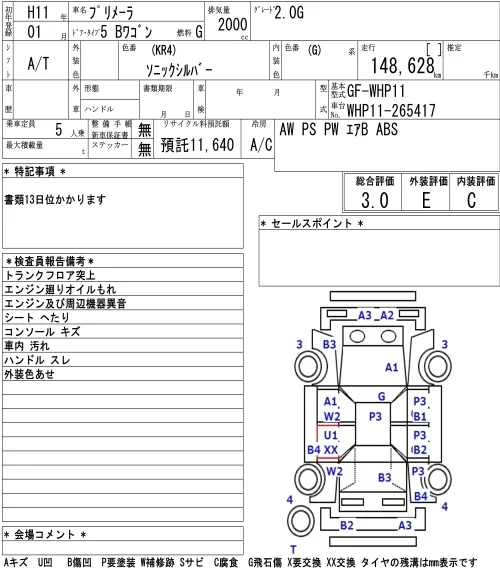 Nissan PRIMERA WAGON с аукциона Японии NAA Tokyo лот № 8522