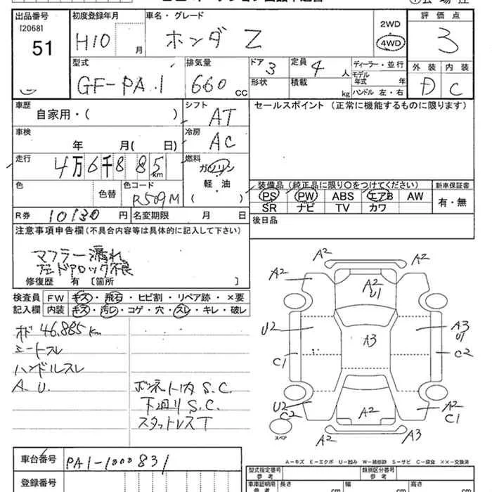 Honda Z с аукциона Японии JU Niigata лот № 51