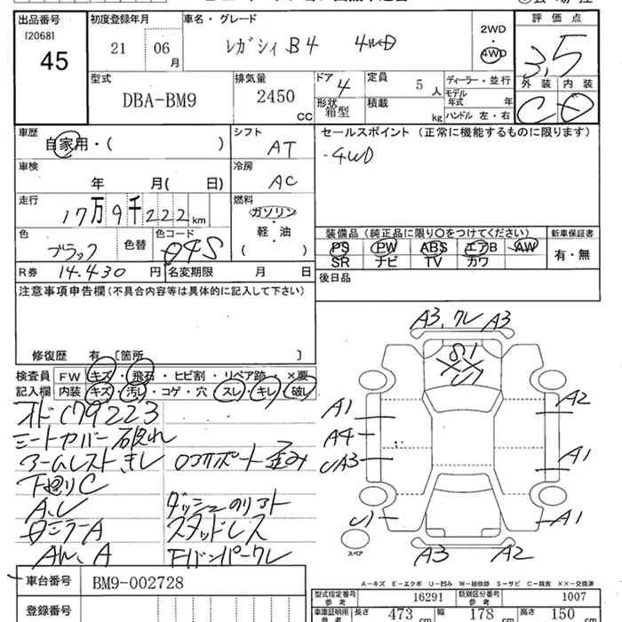 Subaru LEGACY B4 с аукциона Японии JU Niigata лот № 45