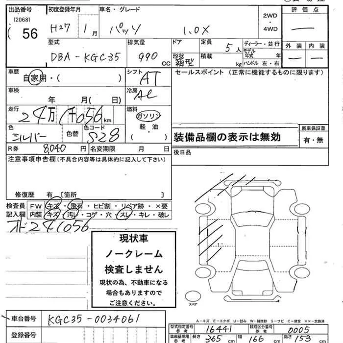 Toyota PASSO с аукциона Японии JU Niigata лот № 56