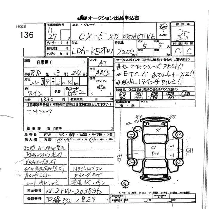 Mazda CX-5 с аукциона Японии JU Okinawa лот № 136