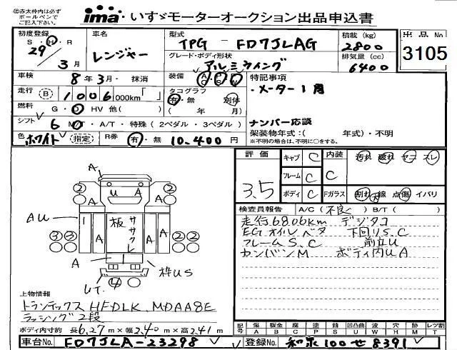 Hino RANGER с аукциона Японии Isuzu Kobe лот № 3105