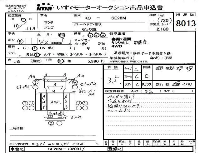 Mazda BONGO с аукциона Японии Isuzu Kobe лот № 8013