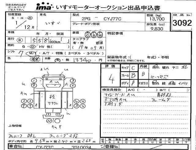 Isuzu TRUCK с аукциона Японии Isuzu Kobe лот № 3092