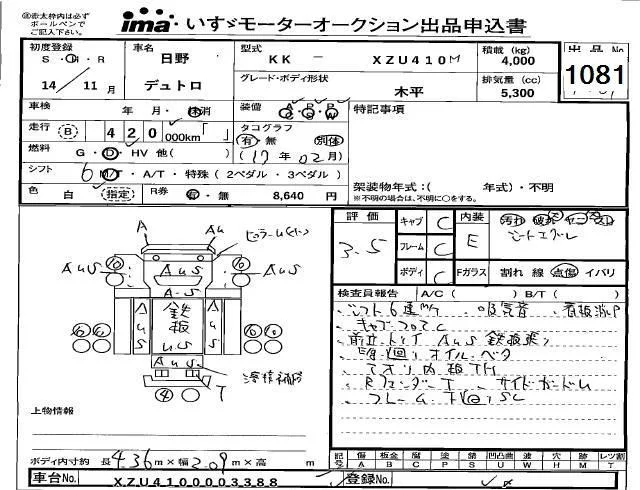 Hino DUTRO с аукциона Японии Isuzu Kobe лот № 1081