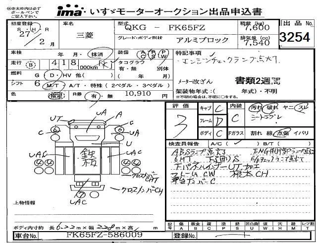 Mitsubishi FUSO FIGHTER с аукциона Японии Isuzu Kobe лот № 3254