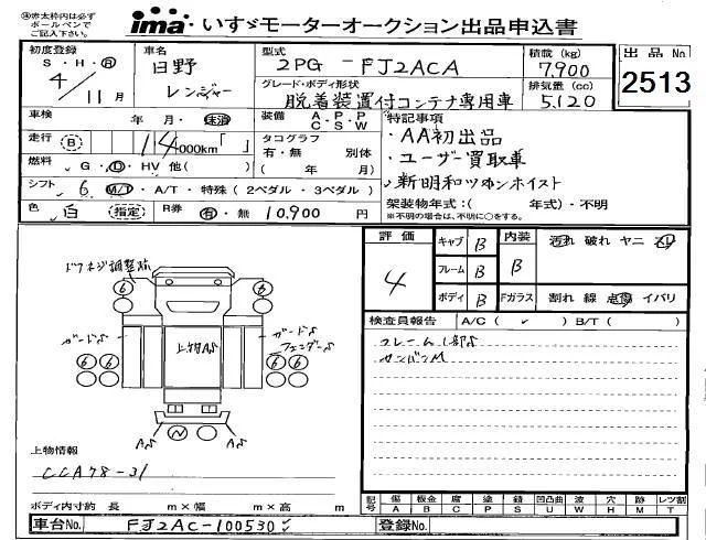 Hino RANGER с аукциона Японии Isuzu Kobe лот № 2513