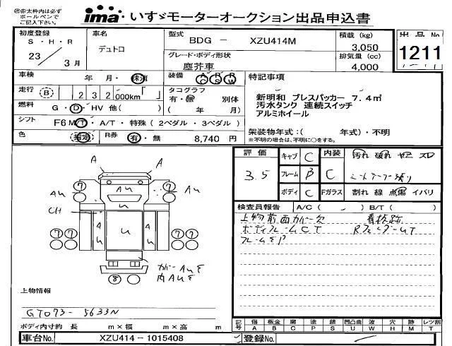 Hino DUTRO с аукциона Японии Isuzu Kobe лот № 1211