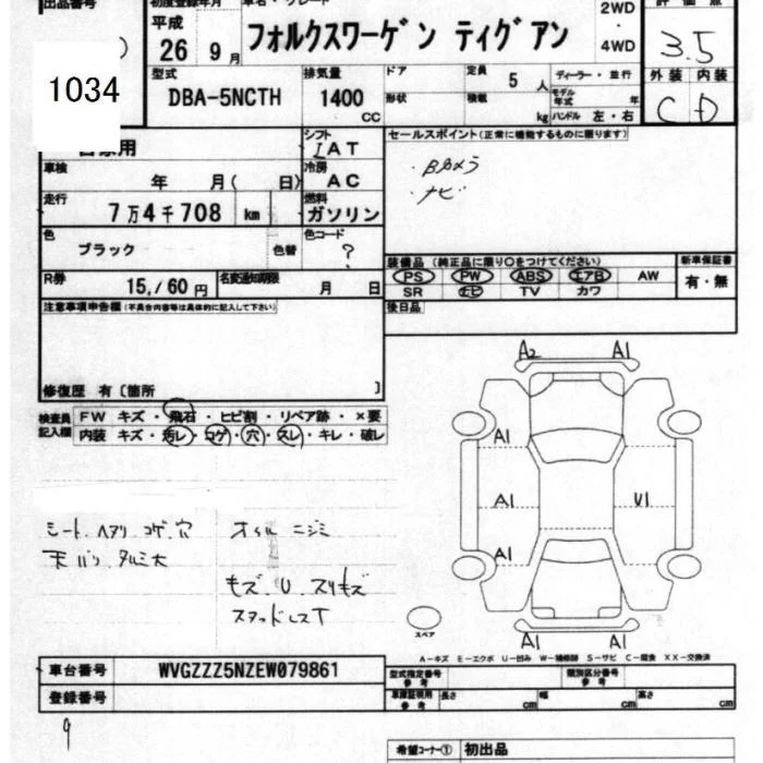 Volkswagen TIGUAN с аукциона Японии JU Chiba лот № 1034