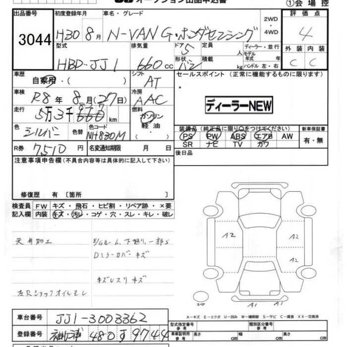 Honda N VAN с аукциона Японии JU Chiba лот № 3044