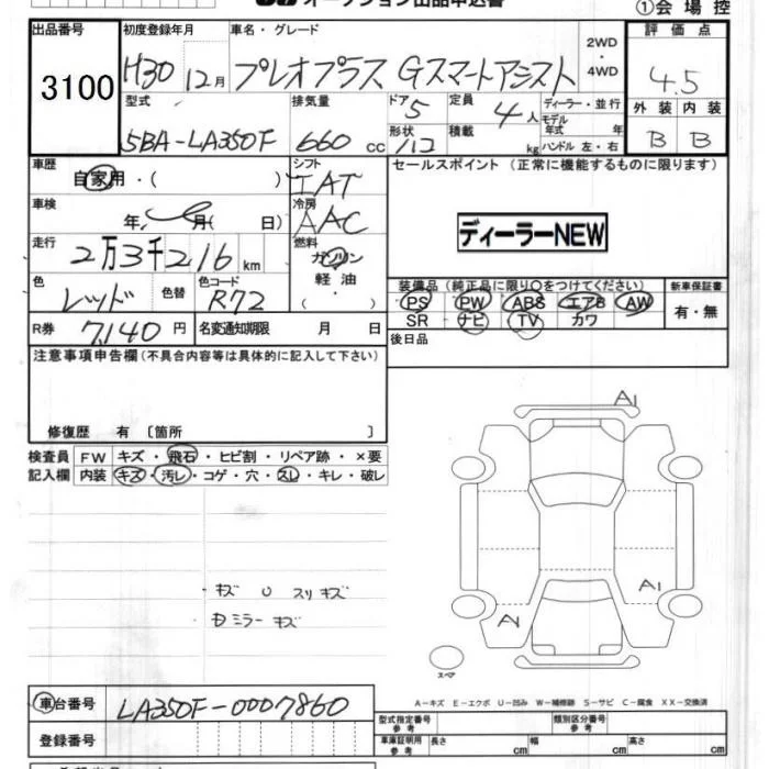 Subaru PLEO PLUS с аукциона Японии JU Chiba лот № 3100