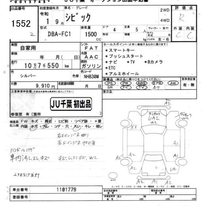Honda CIVIC с аукциона Японии JU Chiba лот № 1552