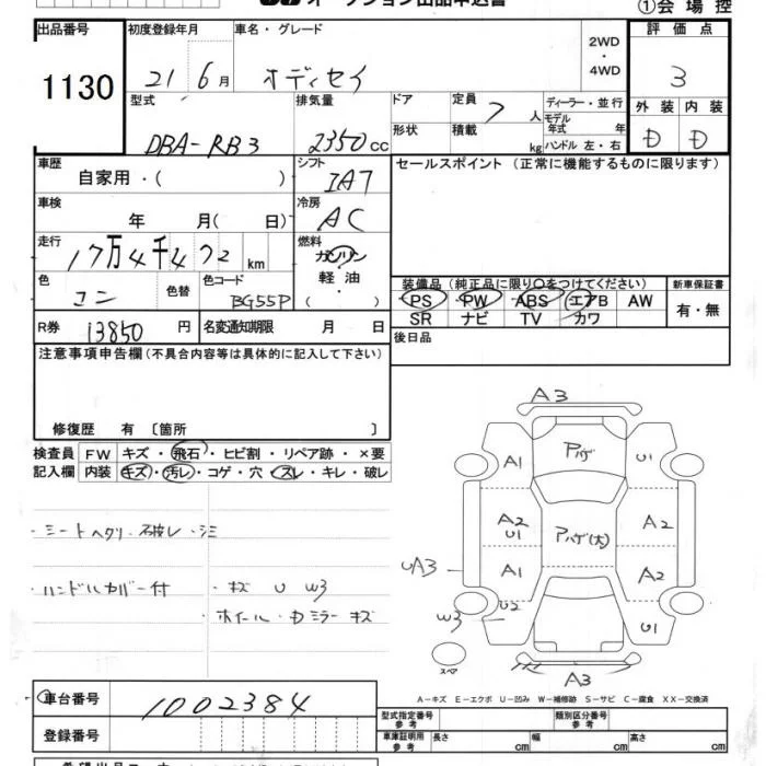 Honda ODYSSEY с аукциона Японии JU Chiba лот № 1130