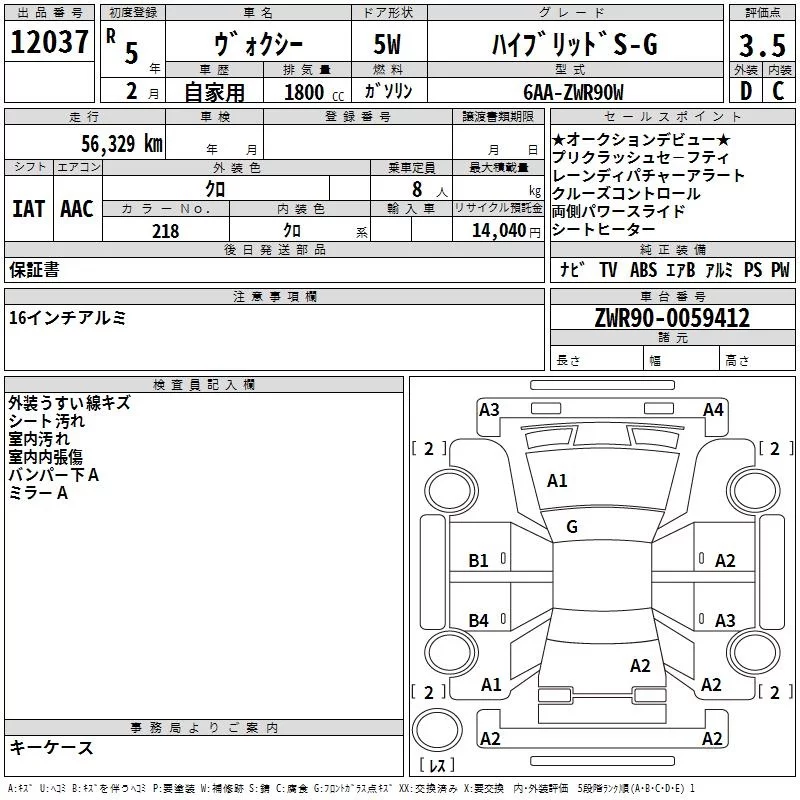 Toyota VOXY с аукциона Японии TAA Yokohama лот № 12037