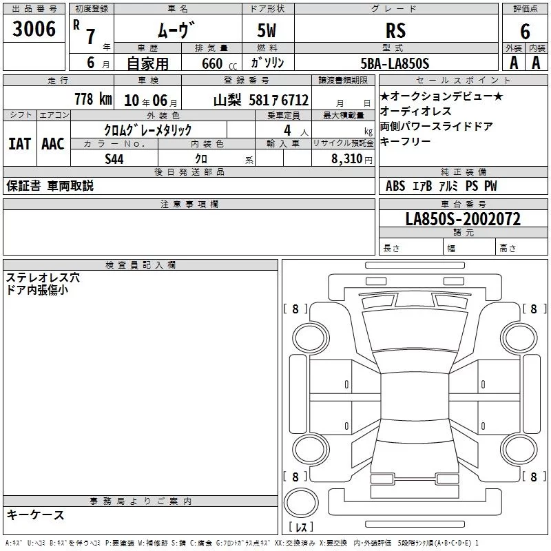 Daihatsu MOVE с аукциона Японии TAA Yokohama лот № 3006