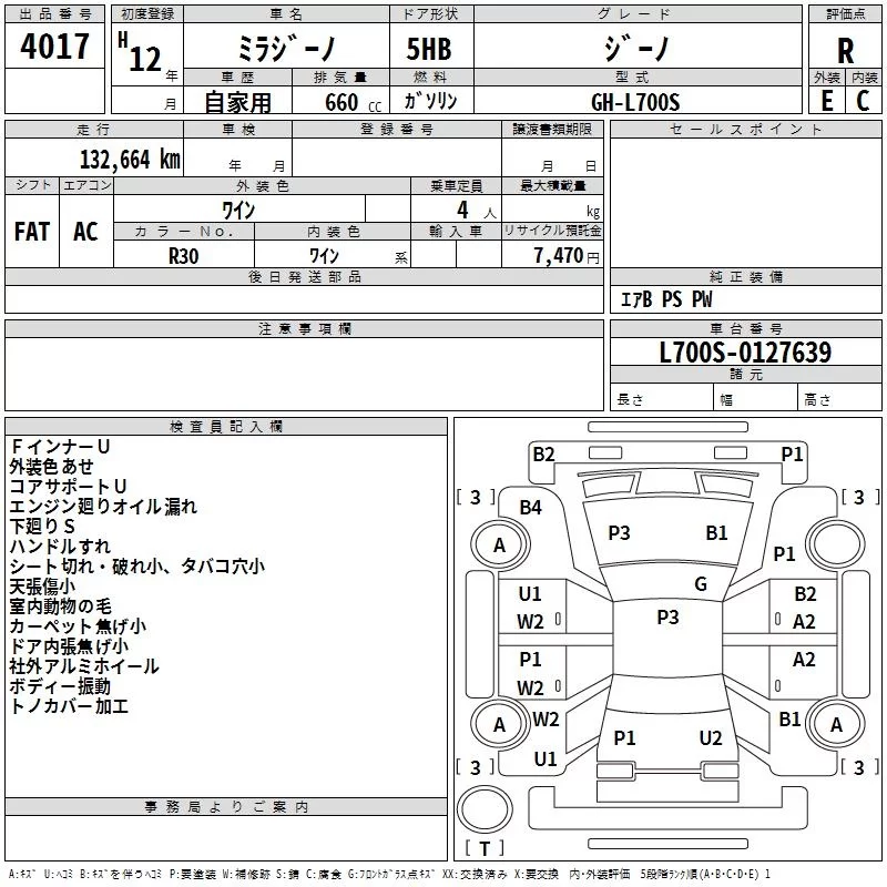 Daihatsu MIRA с аукциона Японии TAA Hyogo лот № 4017
