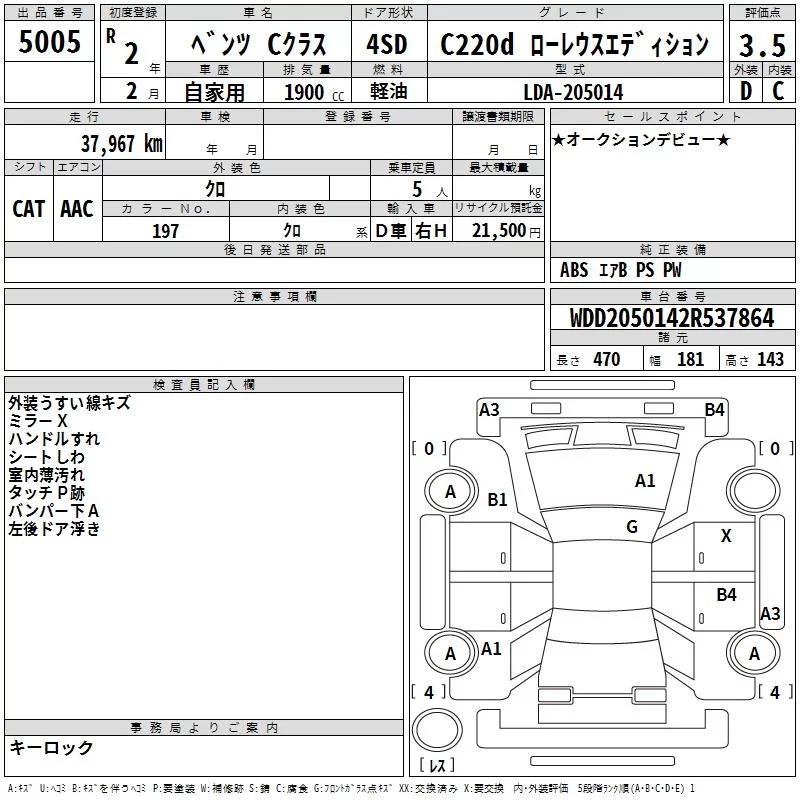 Mercedes-Benz C CLASS с аукциона Японии TAA Yokohama лот № 5005