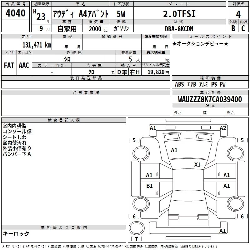 Audi A4 с аукциона Японии TAA Hyogo лот № 4040