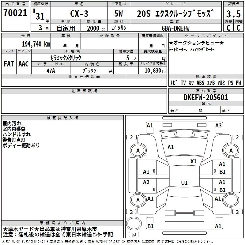 Mazda CX-3 с аукциона Японии TAA Yokohama лот № 70021