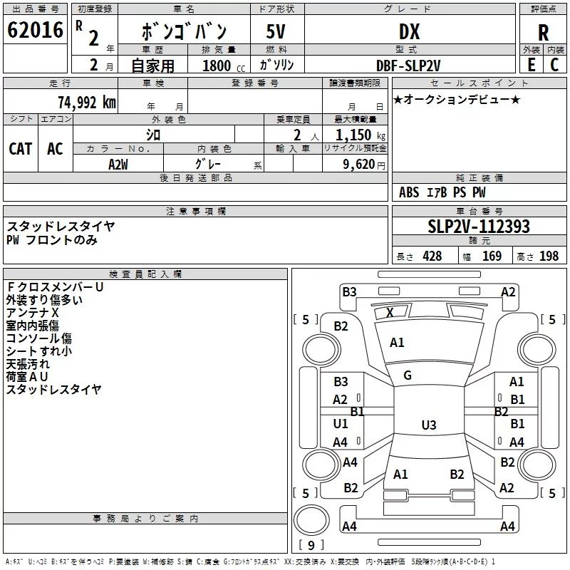 Mazda BONGO VAN с аукциона Японии TAA Hyogo лот № 62016