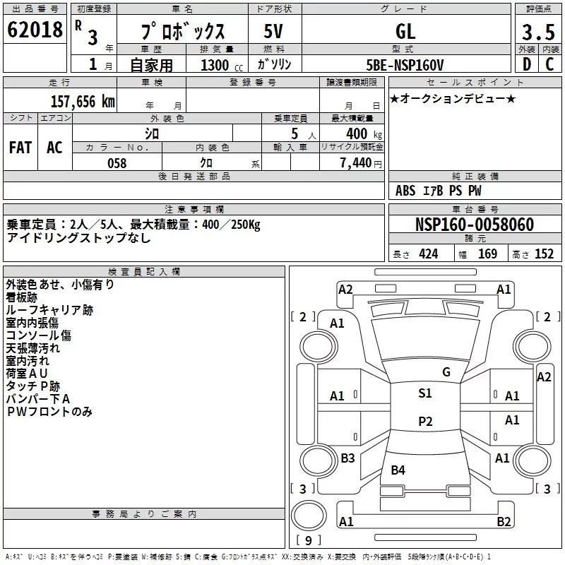 Toyota PROBOX с аукциона Японии TAA Yokohama лот № 62018