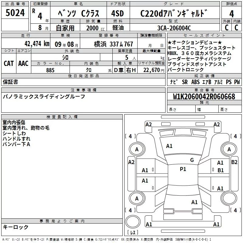 Mercedes-Benz C CLASS с аукциона Японии TAA Yokohama лот № 5024