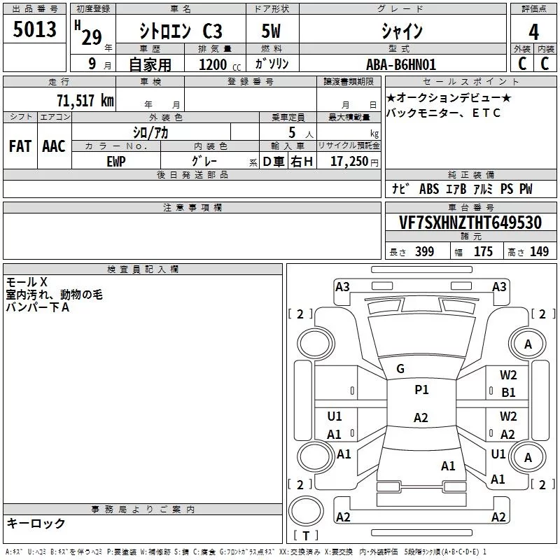 Citroen C3 с аукциона Японии TAA Yokohama лот № 5013