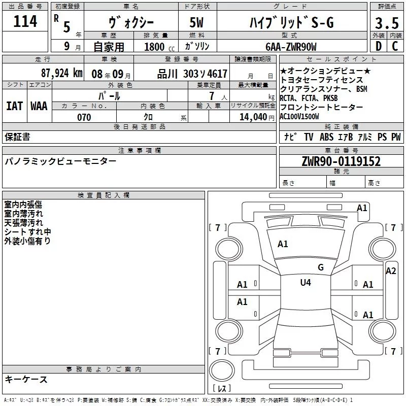Toyota VOXY с аукциона Японии TAA Yokohama лот № 114