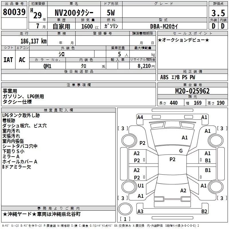 Nissan NV200 с аукциона Японии TAA Yokohama лот № 80039