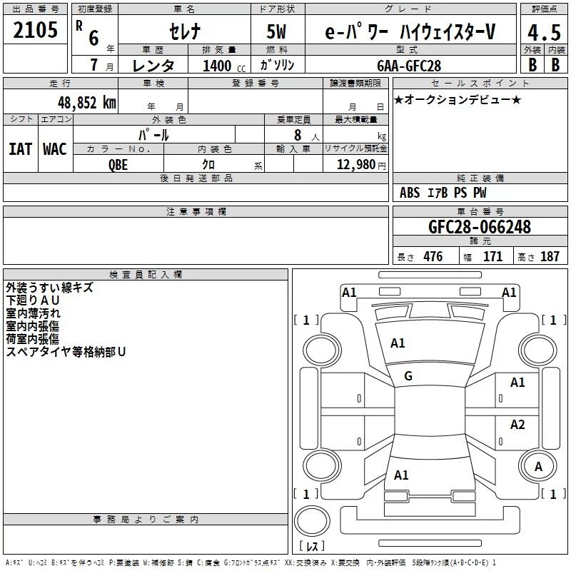 Nissan SERENA с аукциона Японии TAA Hyogo лот № 2105