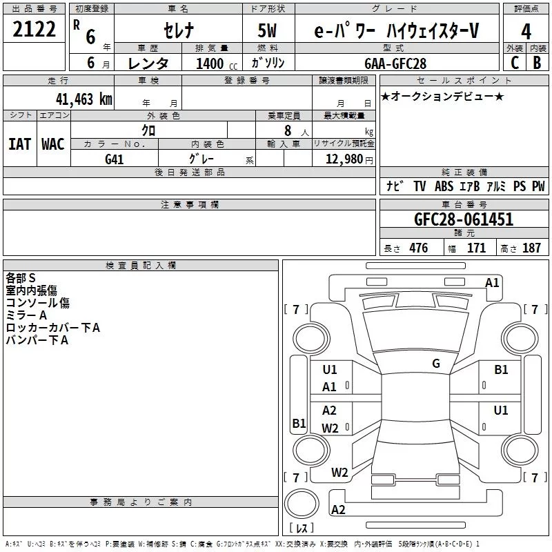 Nissan SERENA с аукциона Японии TAA Hyogo лот № 2122