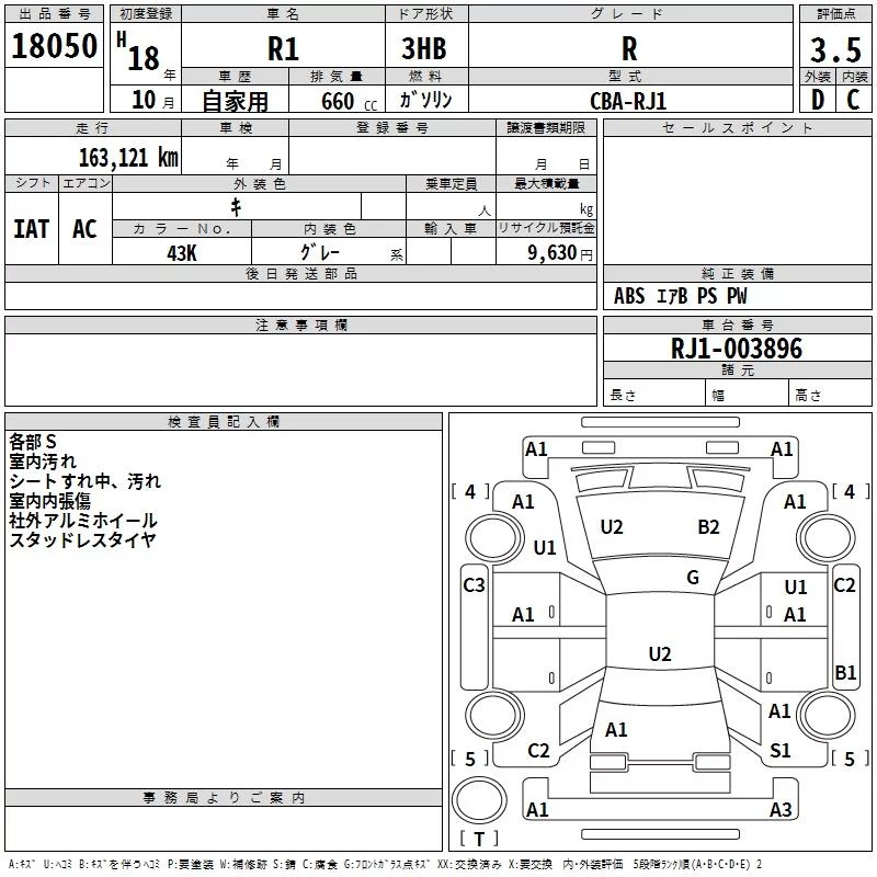 Subaru R1 с аукциона Японии TAA Yokohama лот № 18050