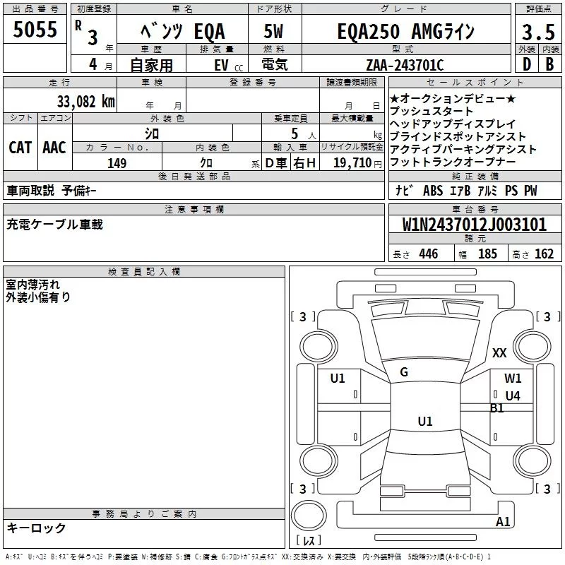 Mercedes-Benz EQA с аукциона Японии TAA Yokohama лот № 5055