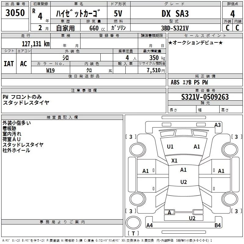 Daihatsu HIJET VAN с аукциона Японии TAA Hyogo лот № 3050