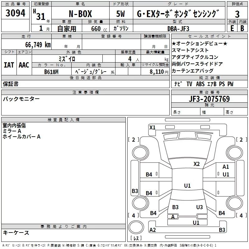 Honda N BOX с аукциона Японии TAA Yokohama лот № 3094