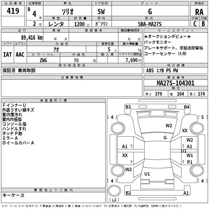 Suzuki SOLIO с аукциона Японии TAA Yokohama лот № 419