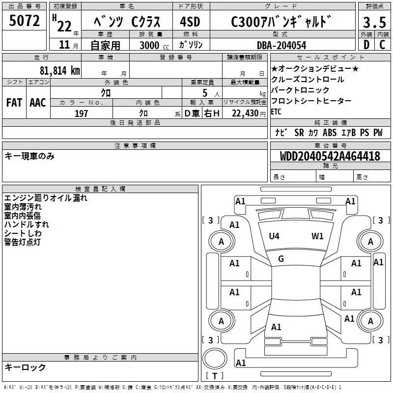 Mercedes-Benz C CLASS с аукциона Японии TAA Yokohama лот № 5072